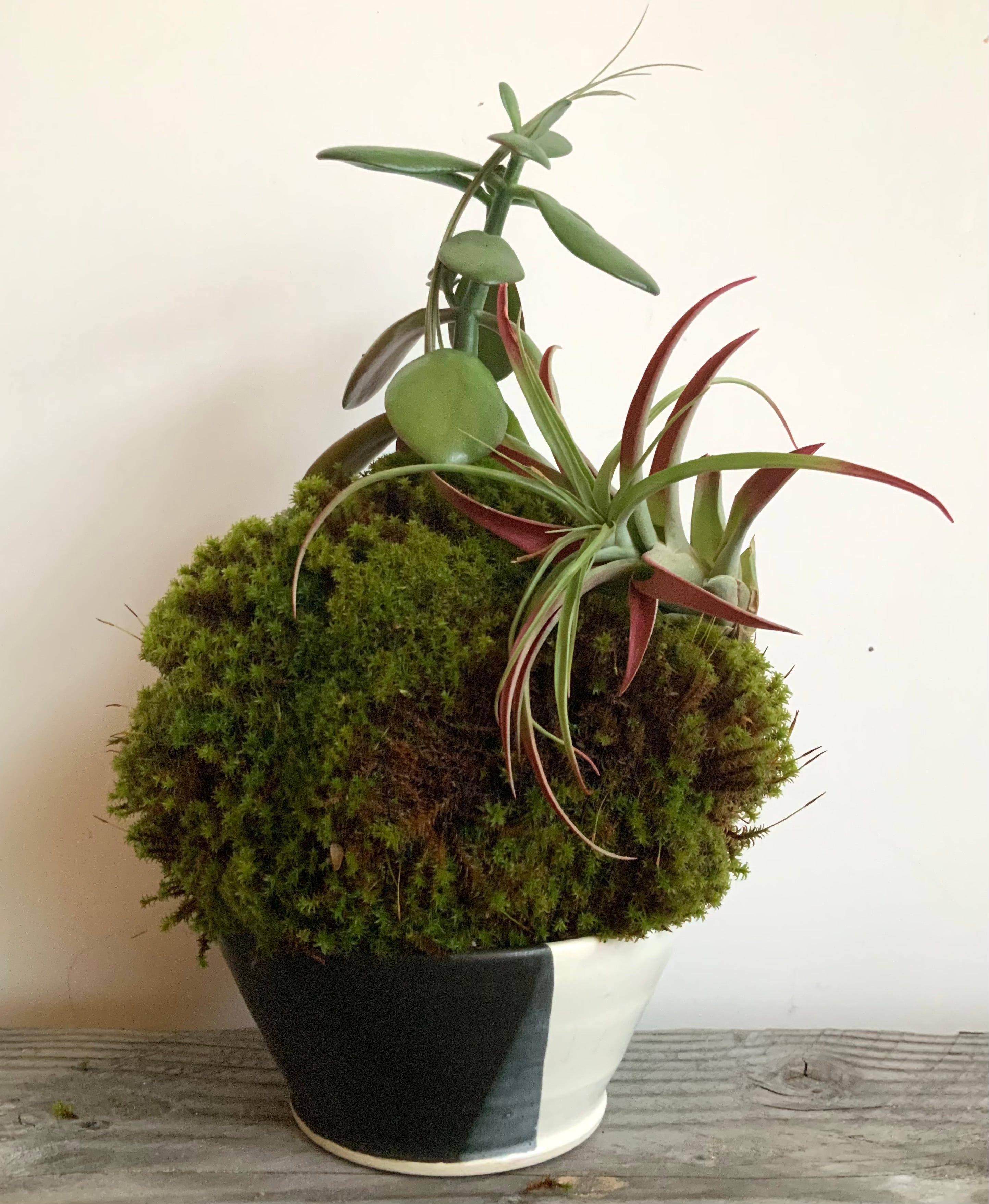 We also recently learned about kokedama, the Japanese technique of creating a living moss ball planter (here’s a great tutorial and fun YouTube channel too). The combination of the moss and the supported plant reminds me of the rock walls I see on hikes, where various plant species (heuchera, ferns, grasses) are coexisting with mats of moss.